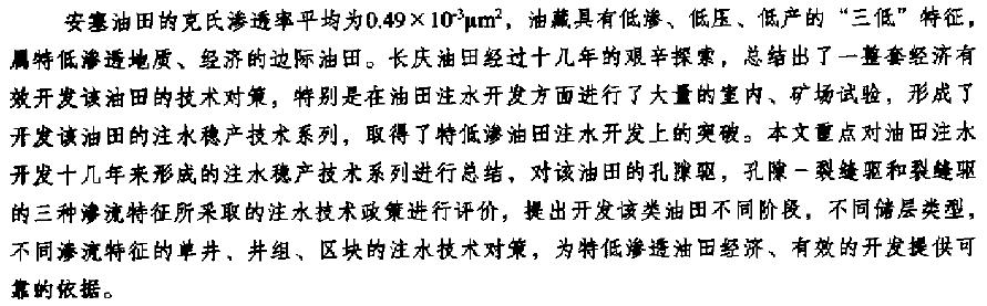 安塞特低滲透油田注水開發穩產技術