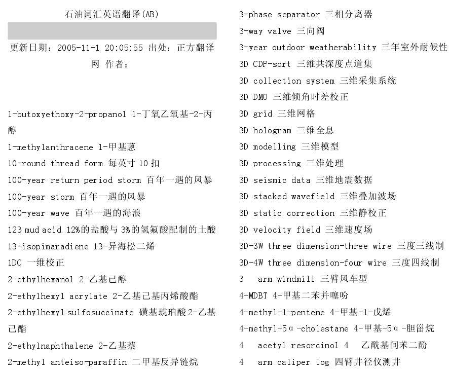 1869頁(兩欄排版)的石油行業相關英語詞匯,從A~Z按字母順序排列。