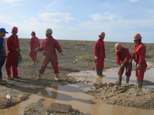 第一次在戈壁上大面積使用井炮施工,鉆井生產(chǎn)成了東方物探277隊運作《準噶爾盆地西北緣艾參1井區(qū)三維采集工程》中的最主要的瓶頸。該工區(qū)沉積層礫石發(fā)育,鉆進困難,塌井、漏井及沉井等現(xiàn)象十分嚴重。