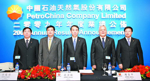 圖為中國石油在香港進行2009年年度業績公布。