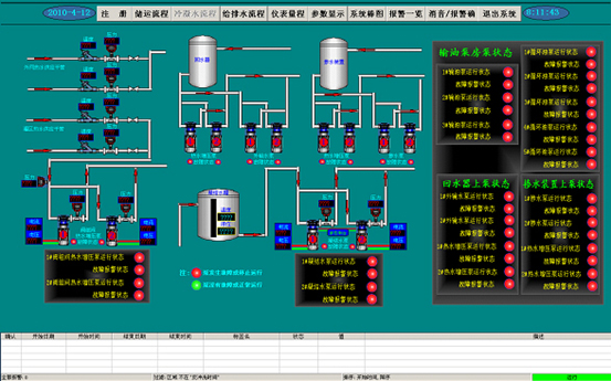 在流程圖上,操作員可以方便的查看主要的參數(如:液位、流量)以及系統各設備當前的運行狀態,同時通過點擊系統流程圖上的各個可控設備實現生產的遠程控制