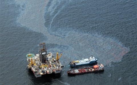 工作船在墨西哥灣漏油油井附近工作