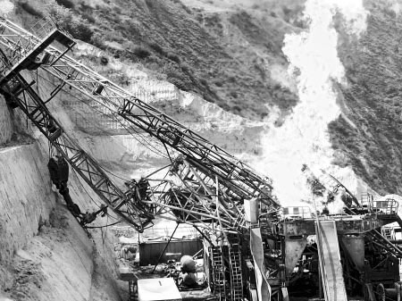 井噴氣井系延長石油集團油氣勘探公司的“332#”天然氣探井,地處延長縣七里村鎮(zhèn)楊旗村的一處山坡上。昨日下午3時許,記者來到井噴現(xiàn)場200米外時,就能明顯感覺到被大火炙烤的感覺,數(shù)十米高的火焰沖向天空,不時發(fā)出“砰砰”的聲響,用于勘探氣井的井架歪倒在山坡上。井噴現(xiàn)場不遠處的一處山頭,幾臺推土機正在高溫下施工。據(jù)一名工人講,被推平的這處山頭地勢相對平緩一些,山頭被推平后,他們將按照專家的搶險計劃,在該處打一斜井直通發(fā)生井噴的“332#”井,擬對其疏導(dǎo)減壓,以達到滅火目的。