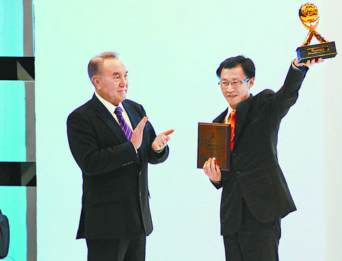 哈薩克斯坦總統納扎爾巴耶夫為阿克糾賓項目頒發哈國企業最佳社會貢獻總統獎。