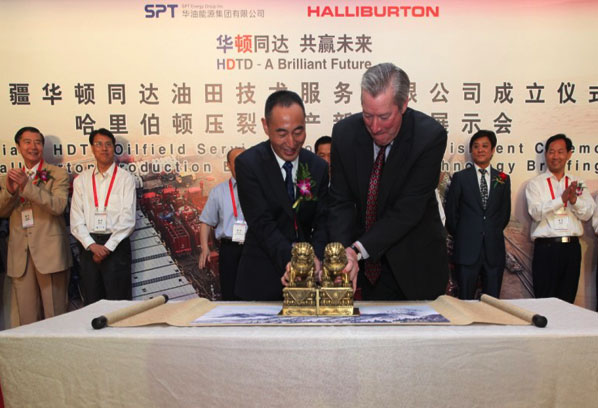 2014年7月9日,哈里伯頓公司宣布與華油能源集團(tuán)旗下新疆華油油氣工程有限公司已簽署協(xié)議,在新疆成立專注于壓裂和增產(chǎn)的合資公司——華頓同達(dá)。華頓同達(dá)是哈里伯頓公司在中國(guó)成立的第一個(gè)壓裂增產(chǎn)合資公司,它將在新疆維吾爾族自治區(qū)提供壓裂增產(chǎn)服務(wù),包括壓裂設(shè)計(jì)和分析、數(shù)據(jù)采集、高壓泵和化學(xué)品等服務(wù)。