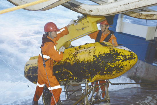 巴西海域此時正值深秋時節,生產期間面臨的最大困難是惡劣的海況。6級以上大風天氣占到了施工時間的70%,平均浪高3米左右,船舶搖擺度最大達到20度。全體員工克服風急浪大等困難,利用轉線的空隙保養水下設備。由于涌浪灌入槍甲板,氣爆組人員不得不在齊腰深的海水中回收設備,在沒膝的冰冷海水中維修槍陣。船舶駕駛人員和物探人員密切合作,保證了水下電纜與槍陣在大風浪轉彎時的安全距離,避免因水下設備纏繞而造成設備與時間損失。