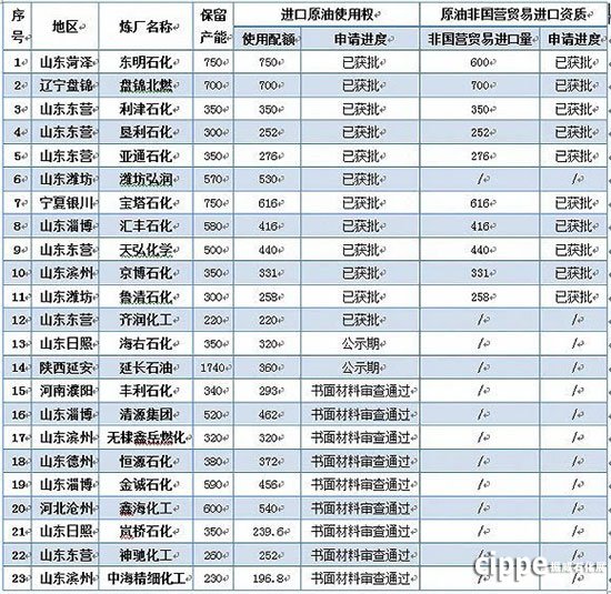 截止2015年底,已有14家煉廠獲得原油進口使用權