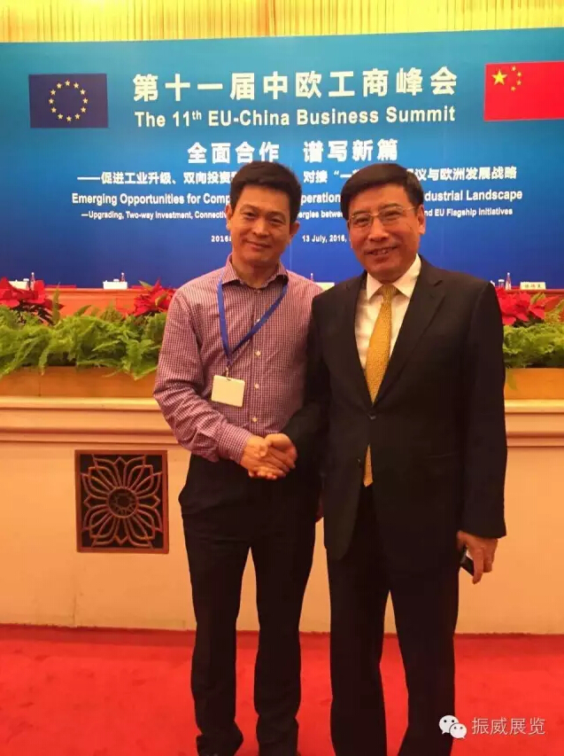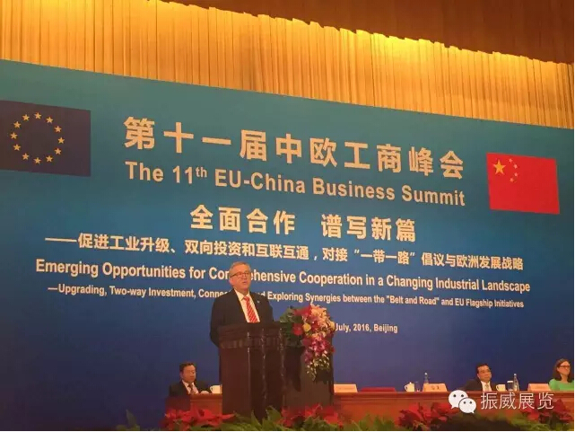 2016年7月13日,第十一屆中歐工商峰會在北京人民大會堂舉行。國務院總理李克強與歐盟委員會主席容克出席峰會并發表講話。李克強表示,圍繞中歐自由貿易區的可行性研究應該會很快啟動。歐盟應當給予中國市場經濟地位。此次峰會,來自歐洲的世界500強企業高級別負責人及國內眾多知名企業家共計600人參會。其中,中國最大的民營展覽企業、振威展覽股份董事長張學山受邀參加此次會議,引發業內關注。據悉,這已是振威展覽股份在不到半個月的時間內,第二次受邀參加有李克強總理到會的高規格對外經貿會議,被業內視為中國會展業走近歐洲、布局“一帶一路”的“里程碑”式事件。