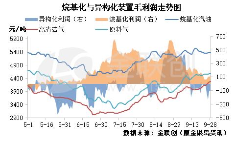 本周,烯烴深加工裝置整體運(yùn)營(yíng)情況不佳,多數(shù)深加工廠家利潤(rùn)下降明顯,甚至跌破成本線。根據(jù)金聯(lián)創(chuàng)的監(jiān)測(cè)數(shù)據(jù)顯示,烷基化裝置周平均毛利潤(rùn)93.5元/噸,環(huán)比大幅下降48.3%;異構(gòu)化裝置本周平均毛利潤(rùn)繼續(xù)維持倒掛,每噸虧損91.1元左右,環(huán)比擴(kuò)大33%;芳構(gòu)化裝置本周理論虧損繼續(xù)放大至371.6元/噸。