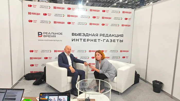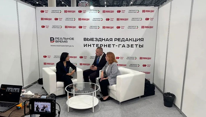 中國(guó)展團(tuán)的精彩亮相也獲得當(dāng)?shù)孛襟w廣泛關(guān)注。展會(huì)期間,俄媒體《реальное время》特邀中國(guó)展團(tuán)代表接受專訪,振威國(guó)際會(huì)展集團(tuán)董事副總裁孫宇、深圳青鈿信息科技有限公司俄羅斯分公司副總經(jīng)理康斯坦丁、北京昊圖科技有限公司副總經(jīng)理劉亞利等暢談合作前景。孫宇在采訪中表示,振威國(guó)際會(huì)展集團(tuán)始終致力于搭建高水平的國(guó)際能源合作平臺(tái),愿借此次展會(huì),進(jìn)一步推動(dòng)中俄企業(yè)之間的務(wù)實(shí)合作。