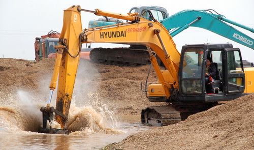 | 主河道開挖圍堰。 |