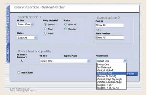To ensure consistent and accurate matching of the bit to the specific drive and trajectory, NOV ReedHycalog developed an interactive, intranet tool for optimization of bit selection. This unique SystemMatcher software incorporates logic regarding tool operation and trajectory requirement, and assesses these against key characteristics of the bit including length, profile, gauge geometry, cutting structure and sidecutting capability, Fig. 13.