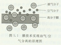 由于油氣與空氣混合物中烴分子與空氣分子的大小不同,在某些薄膜中的滲透速率差異極大,膜分離法就是利用薄膜這一物理特性來實現烴蒸氣與空氣的分離。生產操作中產生的油氣與空氣混合氣體經過