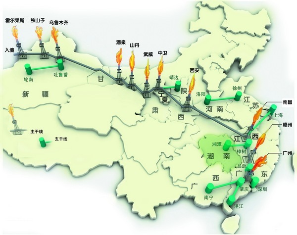 今年6月30日,西二線干線的建成,加上已在運行的西一線,中國已擁有兩條世界級天然氣管道。