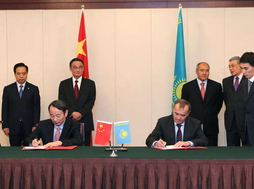 圖為中國石油天然氣集團公司和哈薩克斯坦國家油氣公司簽署《關于中哈天然氣管道C線設計、融資、建設和運營的基本原則協議》。