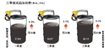 國家發(fā)改委昨日披露數(shù)據(jù)稱,今年以來,國內(nèi)石油行業(yè)生產(chǎn)經(jīng)營總體向好,市場(chǎng)供需整體平穩(wěn)。原油生產(chǎn)累計(jì)15183萬噸,同比增長1.6%,而成品油消費(fèi)前9個(gè)月達(dá)18043萬噸,前三月增幅逐漸收窄。