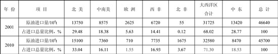 表4 2001年和2010年美國原油進口地區構成