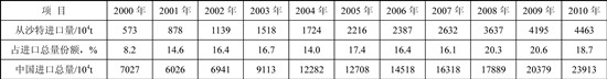 表5 2000~2010年中國從沙特進口原油量及占中國進口總量的份額