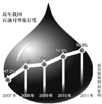 此前,國家能源局局長劉鐵男在全國能源工作會議上透露,2011年我國石油對外依存度達到56.5%,比2010年上升了1.7個百分點,顯示我國原油對外依存度已多年持續(xù)上升。