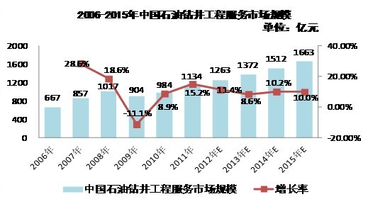 2006-2015年中國石油鉆井工程服務(wù)市場規(guī)模