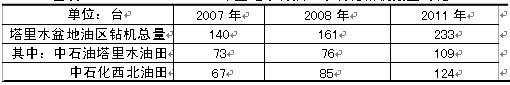 近年來,中石油、中石化塔里木地區(qū)鉆機(jī)數(shù)量不斷增加。據(jù)統(tǒng)計,2007年塔里木盆地在用鉆機(jī)數(shù)僅為124臺,2008年鉆機(jī)總量增至161臺,至2012年初塔里木盆地在用鉆機(jī)數(shù)已增加至233臺。而同一時期,全國鉆機(jī)總數(shù)并沒有太大增長,說明全國的鉆機(jī)向塔里木盆地轉(zhuǎn)移,其在我國的油氣開發(fā)中的地位可見一斑。