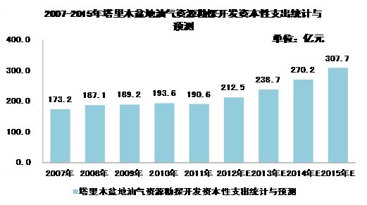 2007-2015年塔里木盆地油氣資源勘探開發(fā)資本性支出統(tǒng)計與預(yù)測