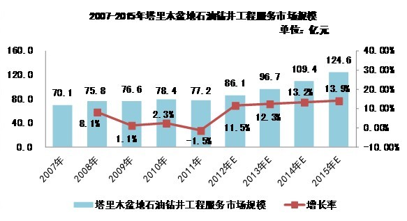 2007-2015年塔里木盆地石油鉆井工程服務(wù)市場規(guī)模