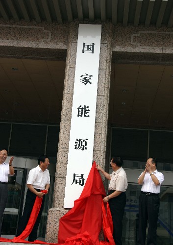 8時8分,國家發展改革委主任張平、國家能源局局長張國寶共同揭下了紅色綢布,“國家能源局”的牌子正式出現在人們面前。