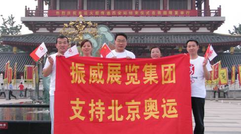 在傳遞現場,中國加油奧運加油喊聲不斷響起,所有在場的人員都被感動。大家都希望通過自己的一份力量,讓世人知道,振威展覽對圣火的熱愛,對祖國的熱愛,要讓鮮艷的五星紅旗紅旗一直陪伴在圣火傳遞的途中。