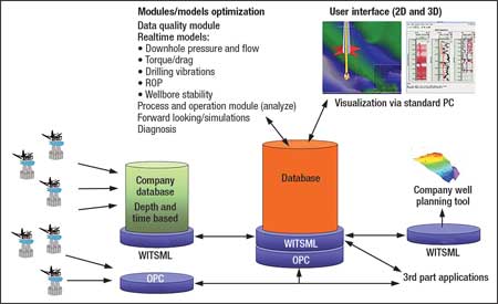The combination of the various elements will make eDrilling very attractive to new people coming into the industry; the so-called “Game Boy generation.” Virtual Wellbore will be a key element in the system, with advanced visualization of the downhole process, i.e., a new, open 3D visualization motor that can visualize all drilling and well related operations involved. The next-generation visualization system is designed to collaborate with all participants involved, enabling enhanced integration of all drilling and well activities in a global environment. The open system architecture allows equipment suppliers, service companies, contractors and operators to connect via standard interfaces (i.e., WITSML, etc.). The system is designed to handle the expected high data rates as a result of the use of wired pipe and similar technologies.