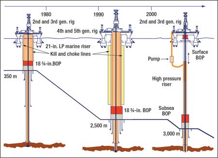 Figure 2 shows the AGR and ORS solutions for dual-gradient MPD solutions in deep water. The AGR’s CMP system may be used with existing BOP and drilling riser systems, while the ORS’s LRRS system is intended to be used with, as we see it, the future slim BOP and HP riser system. Common for both solutions are: