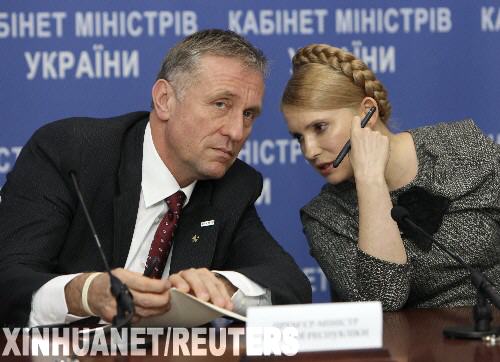 1月11日,烏克蘭總理季莫申科(右)在首都基輔和歐盟輪值主席國捷克總理托波拉內(nèi)克(左)出席新聞發(fā)布會。當天,季莫申科凌晨宣布,烏克蘭已經(jīng)簽署與俄羅斯和歐盟的三方議定書,同意成立對俄羅斯天然氣經(jīng)烏克蘭境內(nèi)管道運輸進行監(jiān)測的多方委員會。