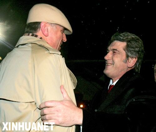 1月9日,烏克蘭總統(tǒng)尤先科(右)到首都基輔的機場迎接歐盟輪值主席國捷克總理托波拉內(nèi)克。當日,托波拉內(nèi)克抵達基輔,與尤先科和烏總理季莫申科就烏俄天然氣爭端問題舉行會談。托波拉內(nèi)克表示,歐盟正努力幫助烏克蘭和俄羅斯解決天然氣爭端。