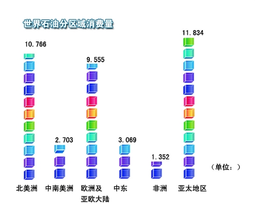 世界石油分區(qū)域消費(fèi)量(圖)