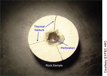 The in-situ lasing method avoids such damage to the rock formation in that no compaction is created. A high-energy laser beam is aimed into the formation, which vaporizes the rock and creates a perforation with a permeable wall surface, EXPEC ARC states.