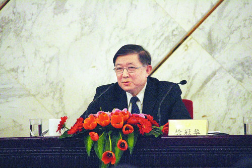 徐冠華委員回答《中國石油報》記者提問。