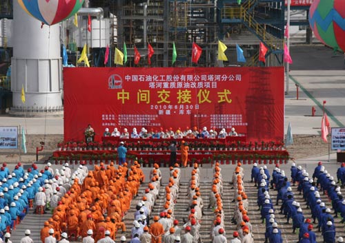6月30日,塔河分公司350萬噸/年重質原油改質項目舉行中交儀式。這個由中國石化總部首個直接管理、以加工劣質稠油為主、中國石化“十一五”規劃確定的重點建設項目將由工程建設階段全面轉入開工試車準備階段。