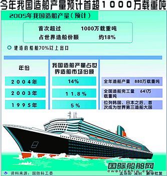 2005年中國造船產量剛剛達到1000萬載重噸