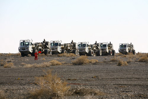 圖為可控震源設備在準噶爾盆地施工。麻隆 攝
