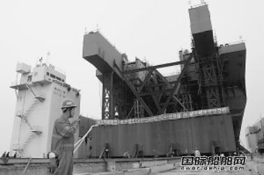 三大模塊今年6月份開始交付煙臺,其中,首個交付的自重18927噸的艏部模塊創下利用駁船下水最重船體的世界之最;而第二個交付的自重17599噸的舯部模塊創下利用氣囊下水最重船體的世界之最;艉部的成功交付標志著此項目在海陽中集來福士的建造順利完成。