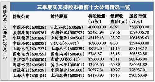 數據顯示,截至昨日收盤,203家A股上市公司持有其他321家公司的股票。持股市值由6月末的2001.19億元增加到目前的2365.85億元,賬面浮盈17.87%。其中,中國石化持有S上石化和S儀化的實質三季度前兩個多月就增加了67.5億元。另外,青海鹽湖工業集團股份有限公司持股的鹽湖鉀肥實質同期上漲了44.53%。