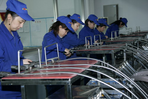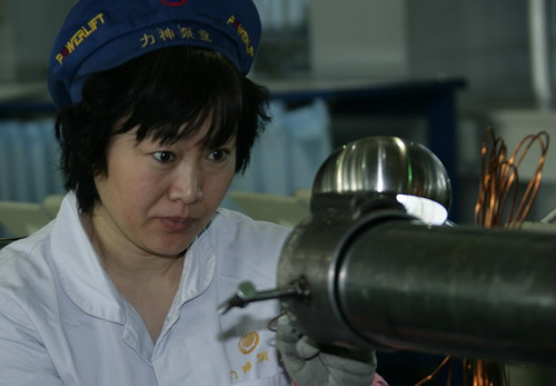 | 1力神員工專心致志組裝電泵定子。 |