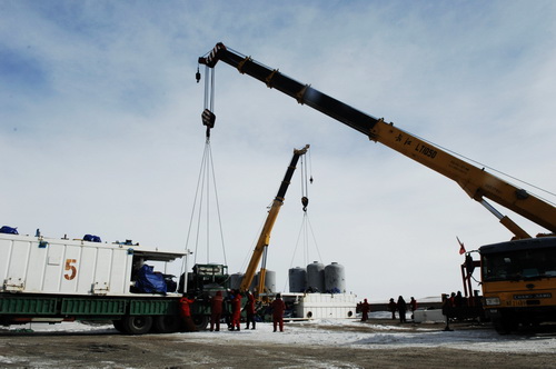 圖為渤海鉆探二公司及時(shí)調(diào)配各類物資裝備,確保如期開鉆?敌l(wèi)東 攝 |