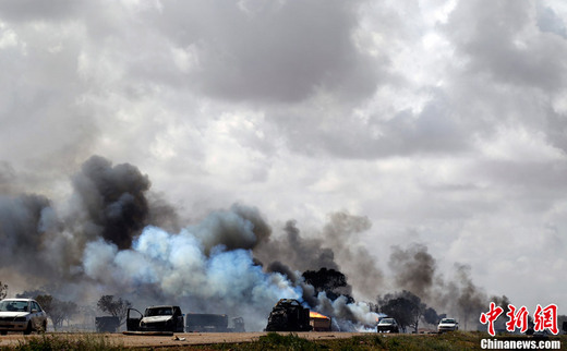 3月20日,班加西附近,忠于卡扎菲的武裝力量裝備遭遇聯軍襲擊。