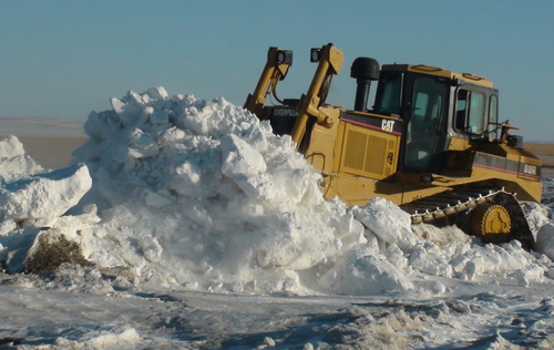 | ① 隊伍搬遷途中,推土機開路。 |