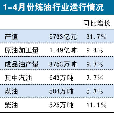 中石化董事長傅成玉曾公開指出,一旦國際油價突破90美元/桶,相關企業在煉化業務上就面臨虧損。對此,國家發改委也稱,“一季度,煉化行業總體實現利潤149億元,同比下降16.2%;虧損企業數量增加11%,虧損企業虧損額約60億元,為去年同期的4.4倍;同時,整個3月全行業利潤總額只有6億元。”