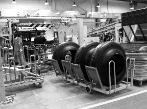 今年以來,陜西延長石油集團(tuán)橡膠有限公司克服原料天然膠價(jià)格大幅波動(dòng)、輪胎市場因汽車工業(yè)增速放緩需求量銳減等不利影響,精心組織生產(chǎn),擇機(jī)采購原料,確保了滿負(fù)荷生產(chǎn)和企業(yè)效益最大化。1~7月,該公司共生產(chǎn)全鋼子午線輪胎25萬條,取得了較好的經(jīng)濟(jì)效益。圖為該公司員工將剛下線的輪胎送往倉庫。