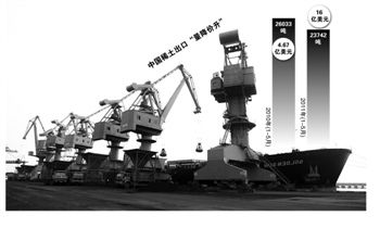 在稀土價格持續上漲之際,中國稀土出口額也迅速上升。8月5日,中國有色金屬工業協會公布,今年上半年,在出口量沒有明顯增加的情況下,我國稀土金屬產品出口額達15.4億美元,同比增長9.3倍。