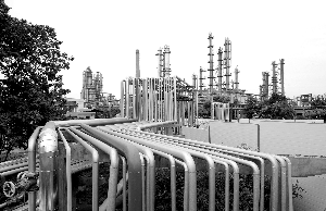 目前,中石化正積極開發和推廣節能新技術、新工藝、新設備,努力依靠科技節能降耗。中石化今年的“十條龍”科技攻關項目,大都以推進節能環保、減排降耗為核心內容,優化工藝流程,節能減排,科技先行,創造更大效益。圖為綠色環保的武漢石化生產裝置一景。