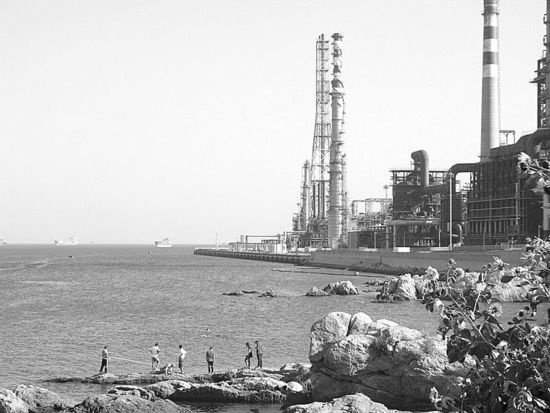在大東西太平洋石油化工有限公司廠區附近,彌漫著一股濃濃的汽油味。出租車司機姚師傅介紹,5年前,大孤山半島基本上還是一片荒涼之地,島上只有幾個小漁村,空氣清新。